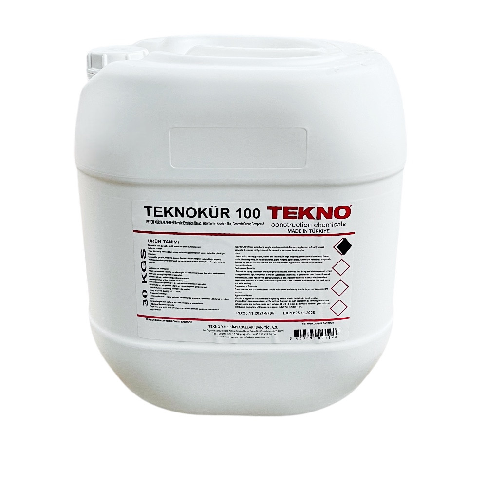 Teknokur 100 – мембраноутворювач для захисту свіжоукладеного бетону від швидкої втрати вологи і зниження ймовірності утворення усадочних тріщин, на основі акрилової емульсії.